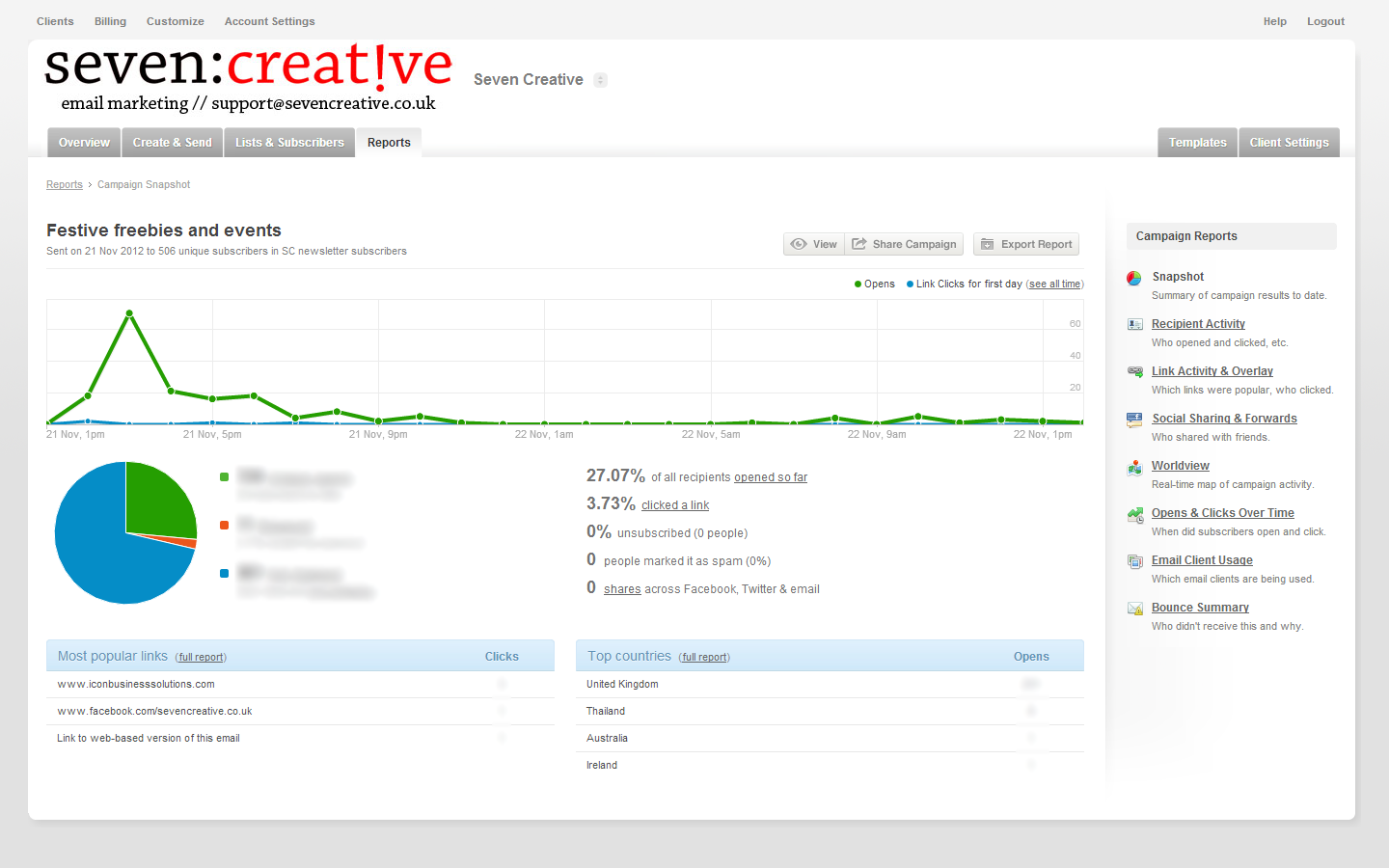 It’s very simple to use and also provides a very powerful real-time visual reporting console allowing you to see opens, clicks and shares as they’re happening.