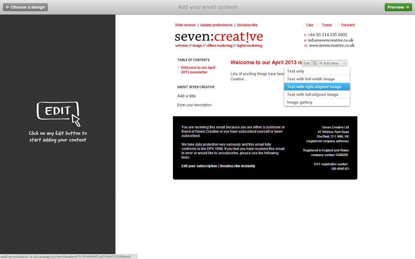 We are, however, particularly proud of our ‘fantastic email marketing system’. It provides a very powerful platform from which to manage your email marketing campaigns