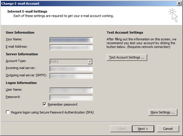 Remember, making changes to your Outlook settings may result in you not being able to collect or send email any more so if you’re not 100% sure what you’re doing, please get help from an expert