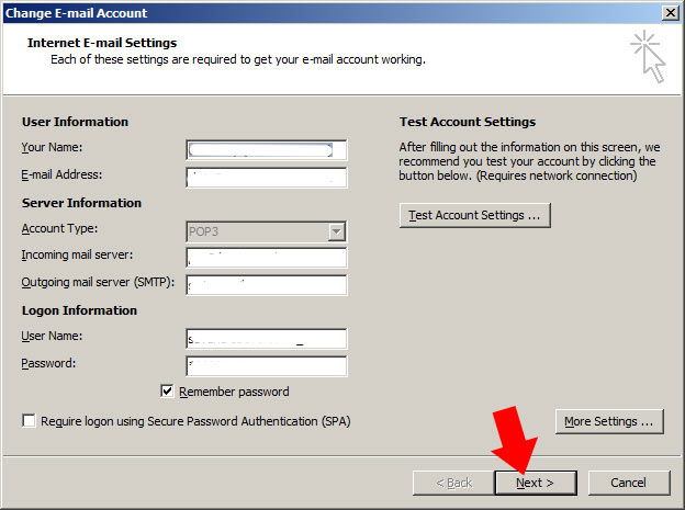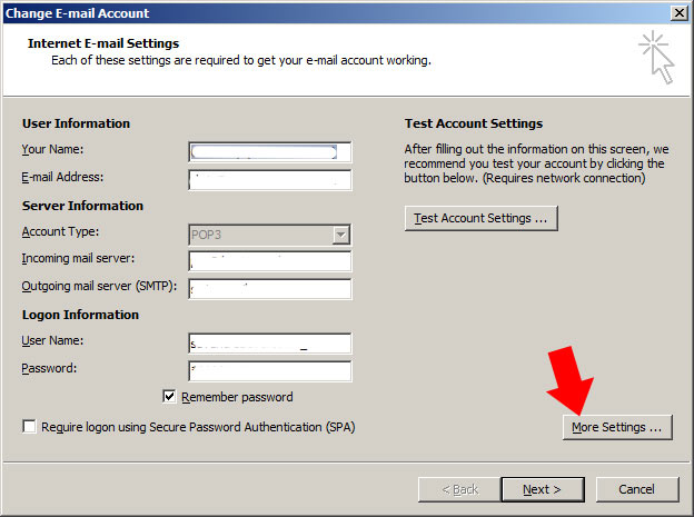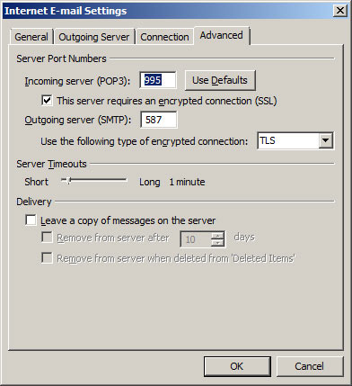 - tick ‘OK’ to take you back to the ‘internet e-mail settings’ page