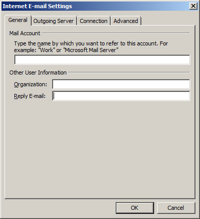 Fill in the information in the three boxes on the ‘general’ tab (the name you’d like to call this account can be anything, you can leave organisation blank and the reply-to addrsess is the address you’d like people to reply to)